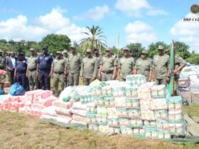 Polícia de Moçambique entrega oito toneladas de donativos a colegas afetados pelas inundações em Gaza